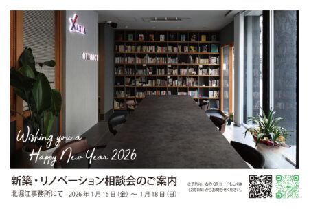 大阪市西区北堀江に開設した新事務所にて、新築・リノベーション・住まいづくり全般に関する個別相談会を開催いたします。